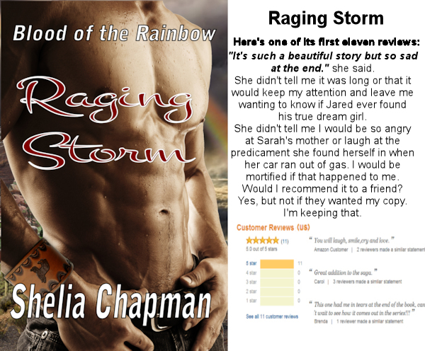Raging Storm is the first book of the Blood of the Rainbow trilogy written by my wife Shelia Chapman. It's a paranormal romance and can be regarded as a prequel to the A Vested Interest series. This first book is FREE. It's an unusual book in that the first people to read it all gave it five star reviews. By the time it had eleven of them people were starting to think the reviews were not real. I had to ask people to be more critical and NOT rate it five stars! Probably the reason it was so successful with reviews is that it has a very emotional and powerful ending.
