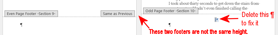 If you look carefully (if needed click the image to open it full screen. Return to this page using your browser back button) You'll notice I have Show/Hide turned on and my pointer is in the header area. To the left of it you'll see a greyed out pillcrow symbol (¶).